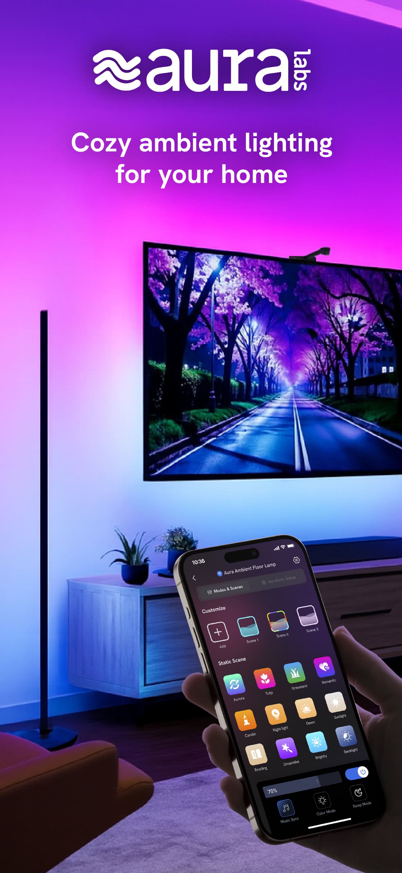 We make ambient lighting simple, easy to control, and perfectly in tune with you. The Aura goal is to help you experience lighting that fit your vibe at an affordable price.