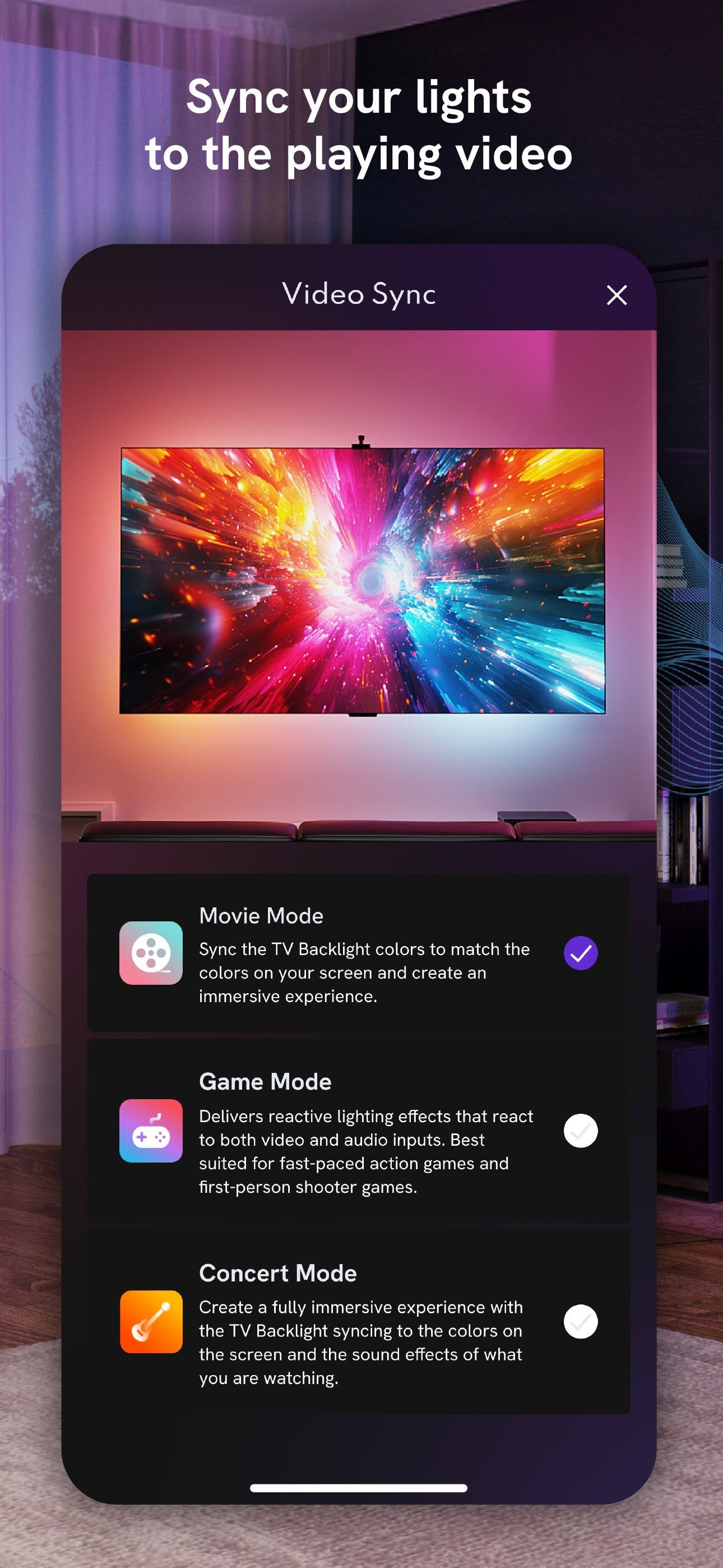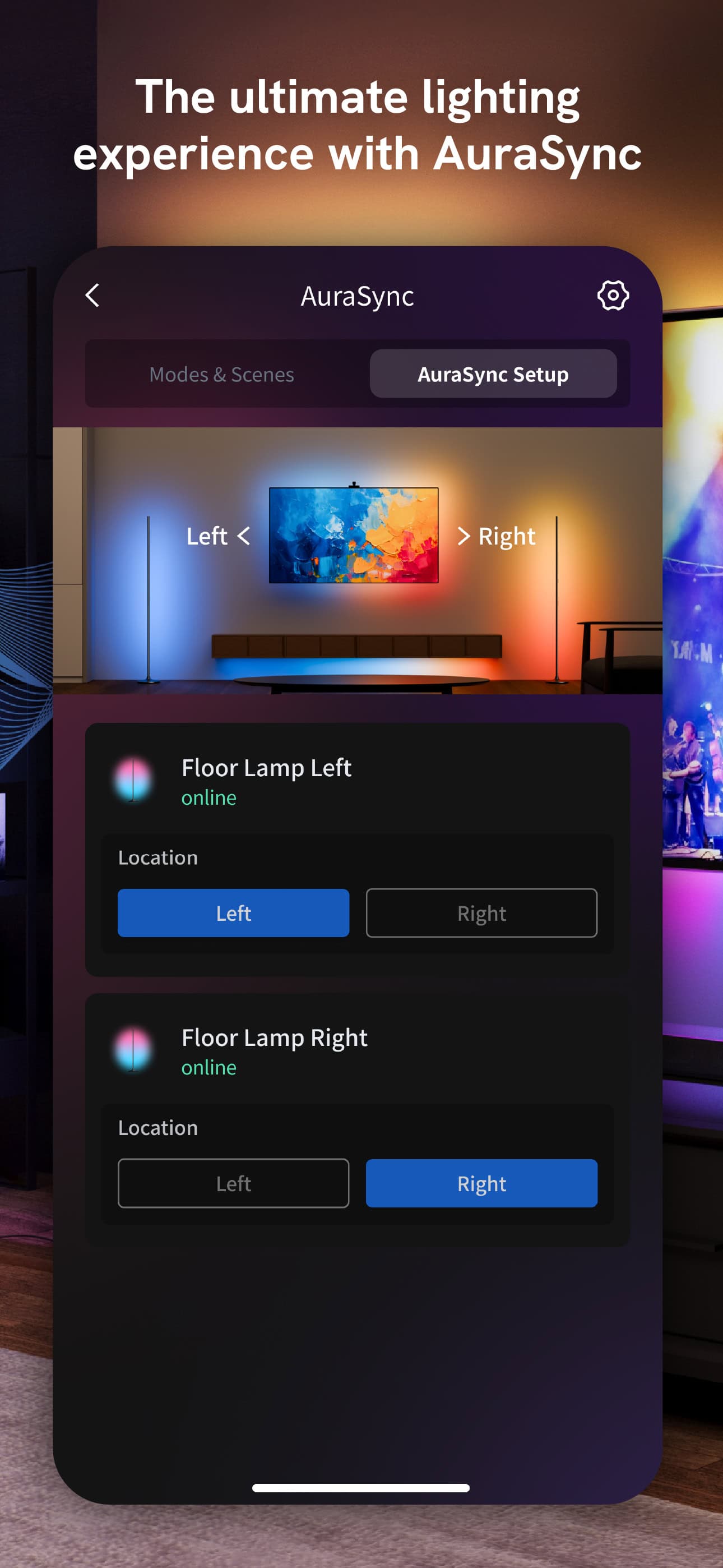Add Aura magic to your TV and witness shows and movies burst to life. With Aura ColorSync, your TV Backlight will match your TVs colors and/or sound in real-time.