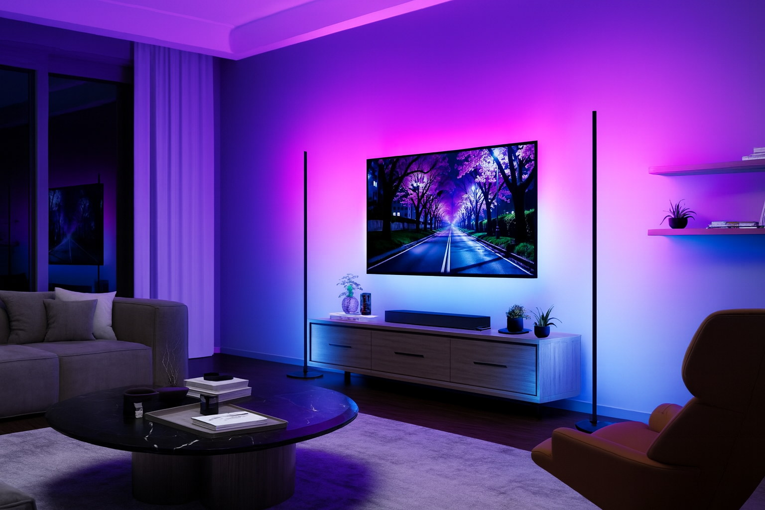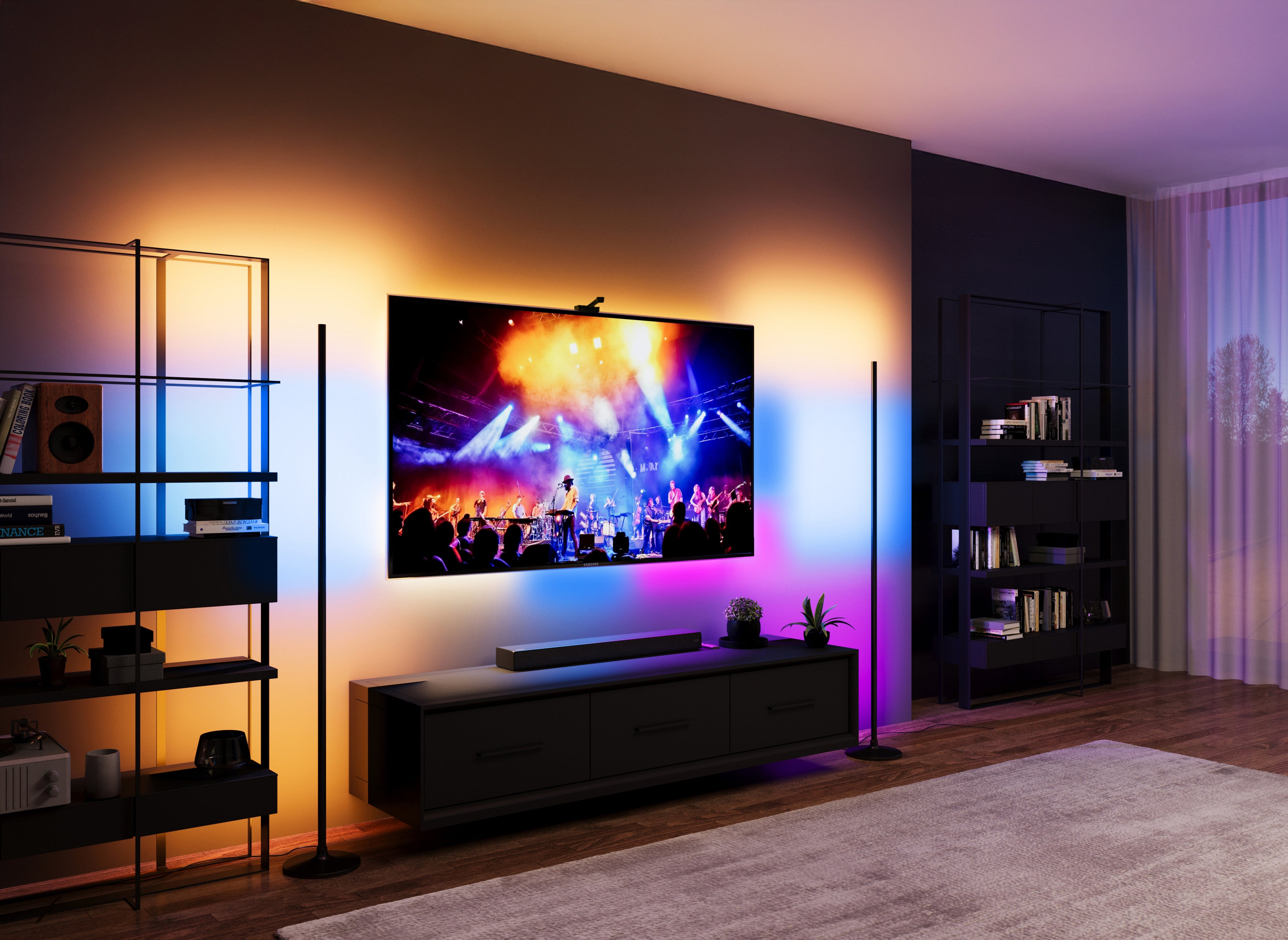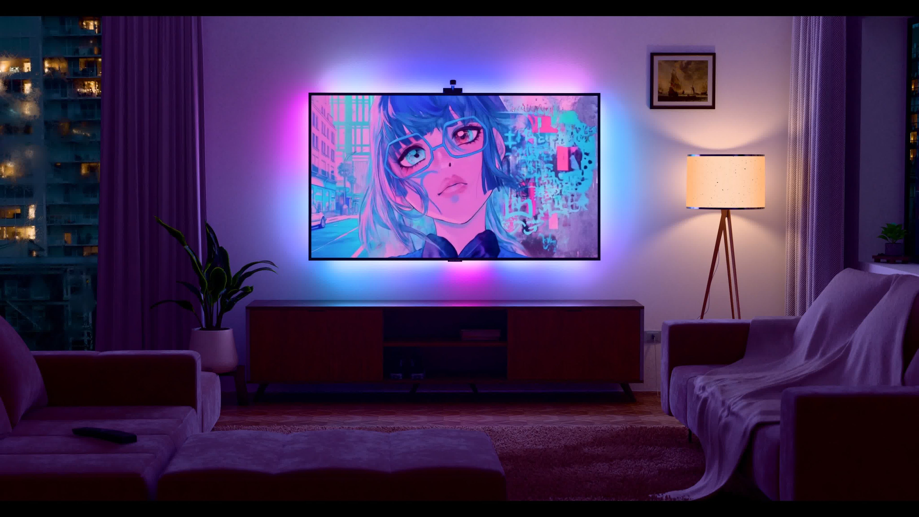 RGBICW LED lighting, designed for a TV screen and ambiance. Learn more.